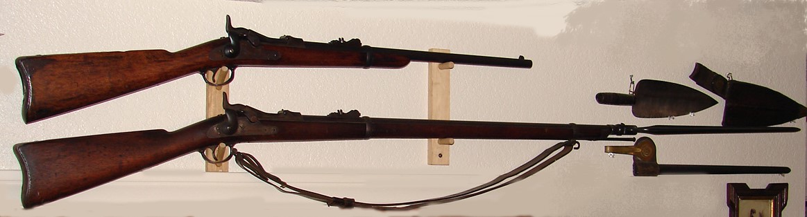 The next important step was the advanced development of the breech loading shoulder arm (carbines). When the self-contained cartridge appeared in the mid-1800s, the problems of ignition and loading disappeared. With the breech-loader, it was a simple matter of putting a round into the chamber. The single shot carbine and the repeating rifle Army which appeared near the end of the Civil War, were used mainly by the Union.