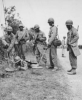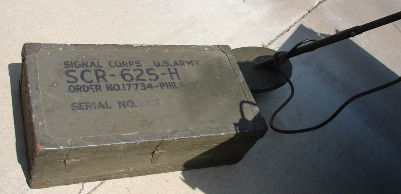 The SCR-625 was the original portable mine detector, developed under a National Defense Research Council (NDRC) contract with Hazeltine Co. of New York in the early days of World War II.  It was fielded in 1942 and first saw combat use in North Africa. The detector was standardized and put into production by the Army’s Services of Supply in September 1942 and was available for the American units that landed in Morocco in November. Overall, the new detector performed well and became one of the most popular pieces of Army equipment in North Africa.  It had two serious shortcomings: it was not waterproof and it was quite fragile.